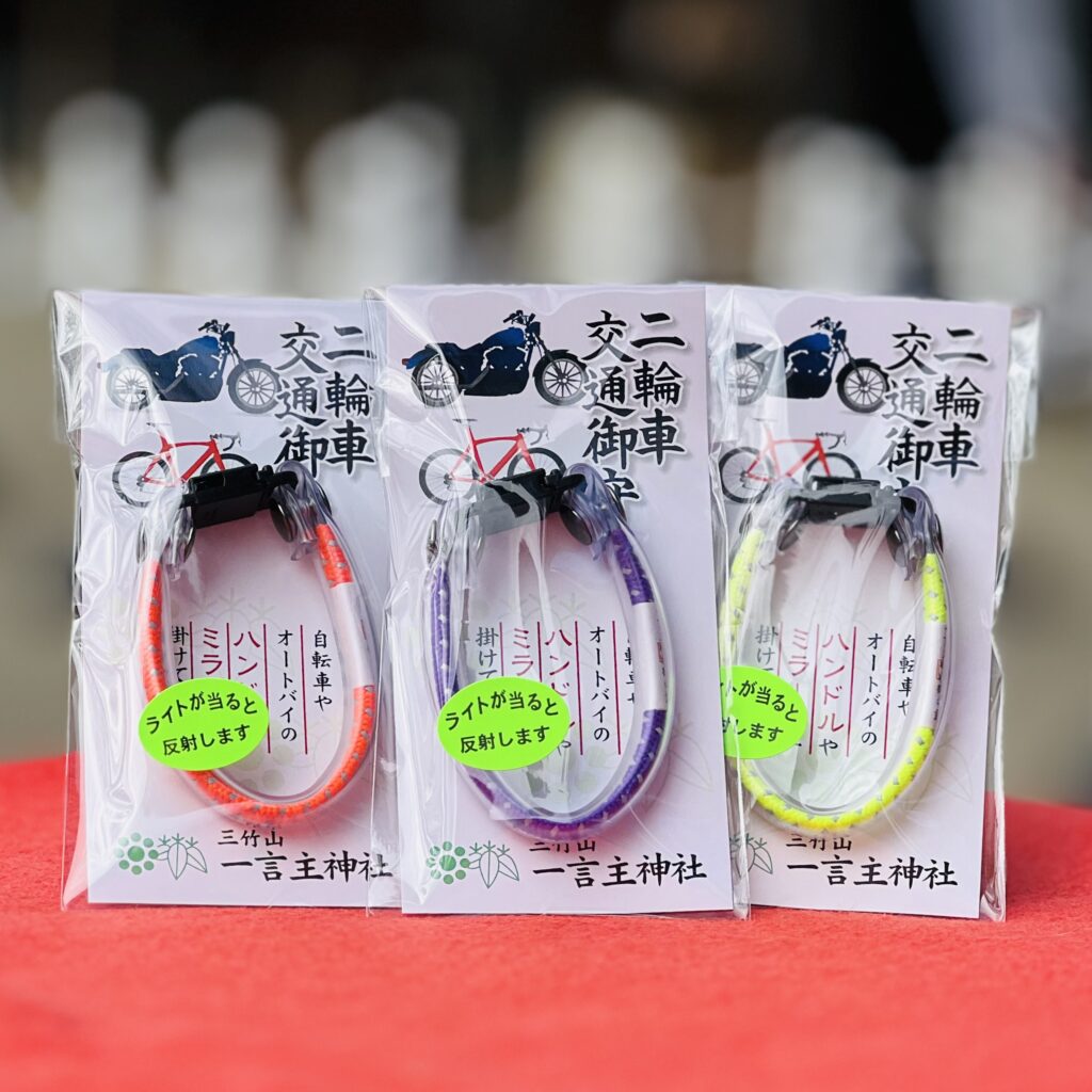 自転車・オートバイ等に付けられるベルト式の御守りです。 反射素材を使用しています。