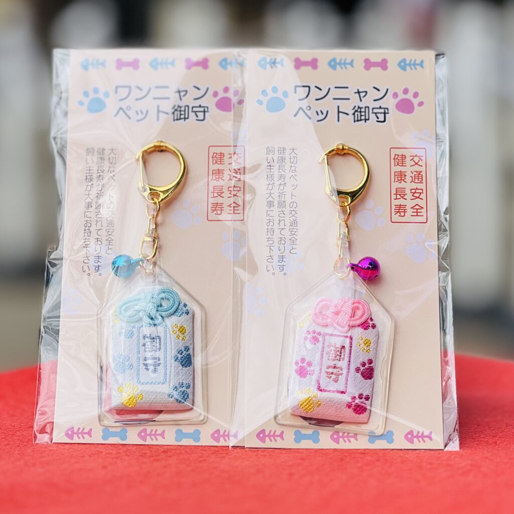 ペットの健康と交通安全を祈念したお守りです。リードや首輪などにおつけ下さい。